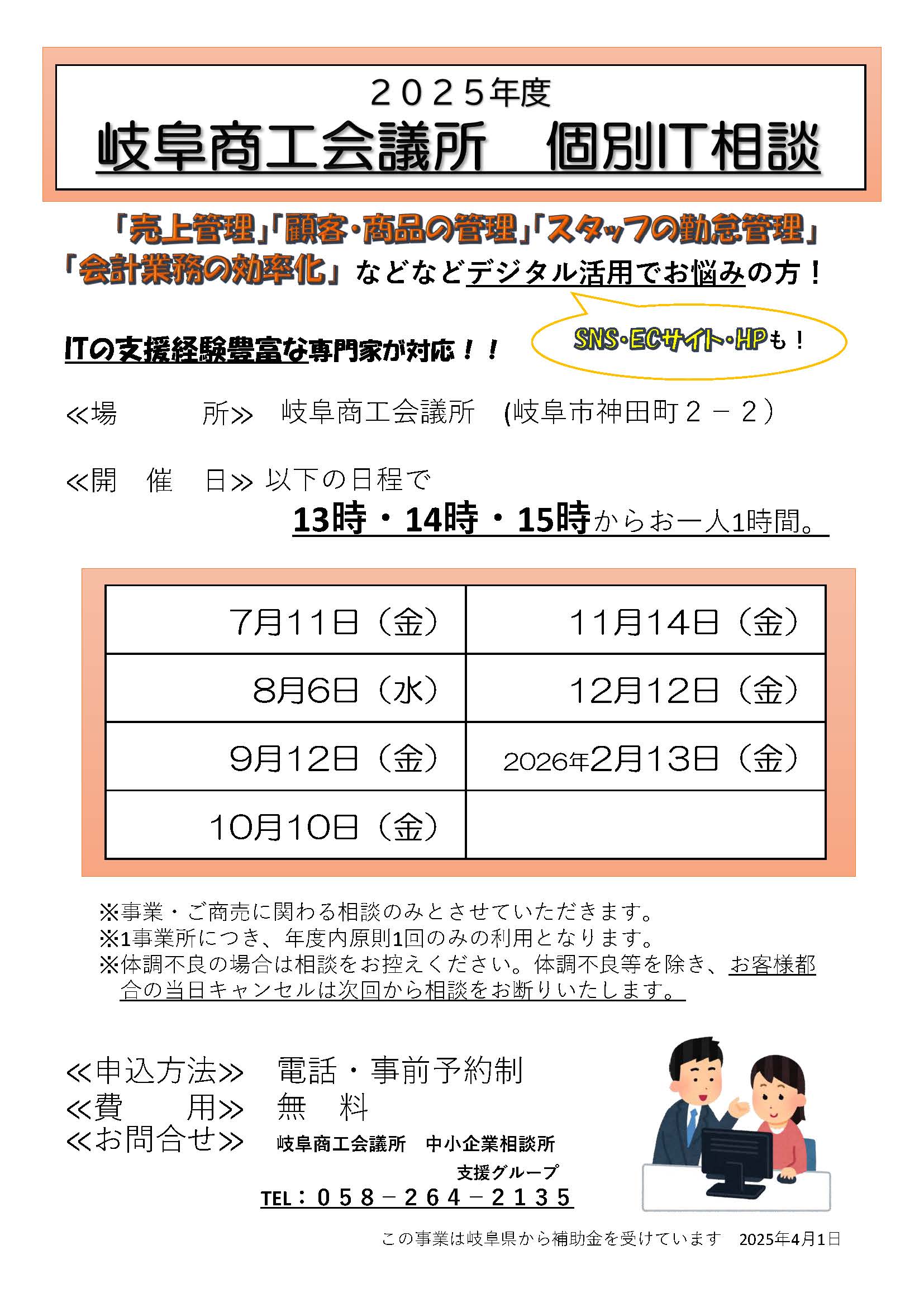 お問合せ・ご予約 岐阜商工会議所 中小企業相談所 支援グループ пi058)264−2135