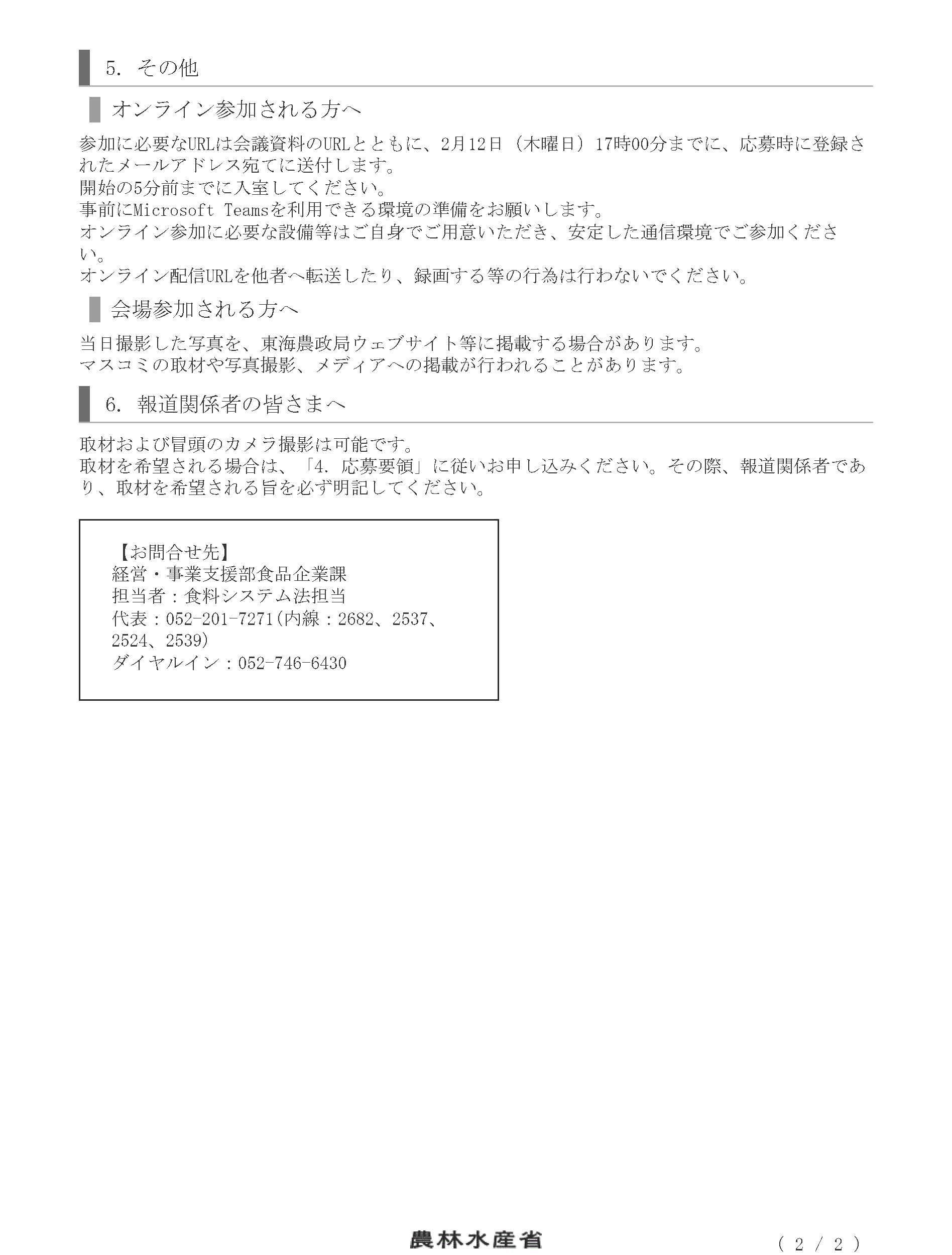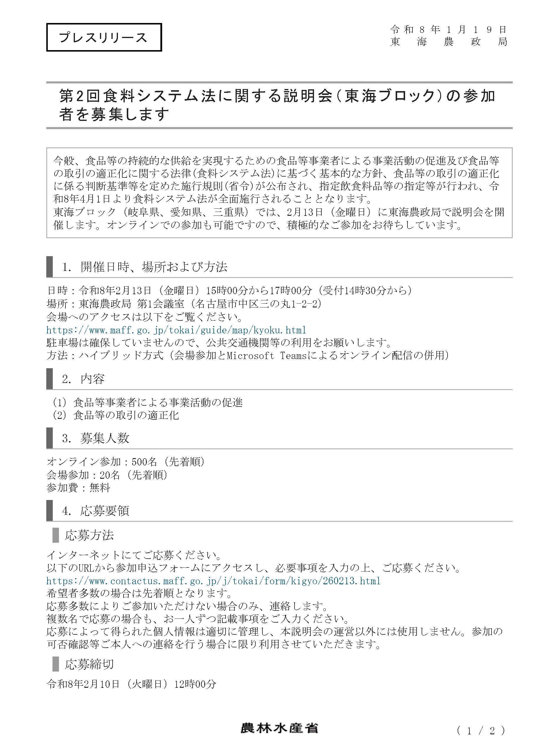 第2回食料システム法に関する説明会について(東海ブロック)【東海農政局】