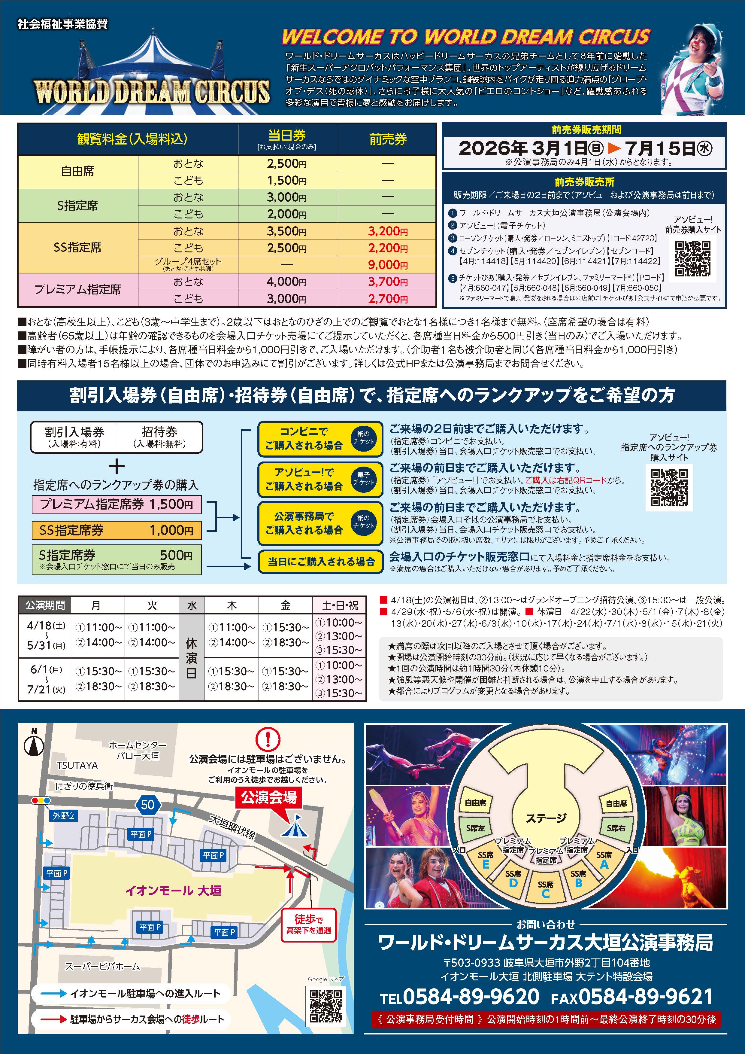 岐阜商工会議所 会員様限定でイオンモール大垣にて開催予定のワールド・ドリームサーカスの特別割引券をお渡ししています。